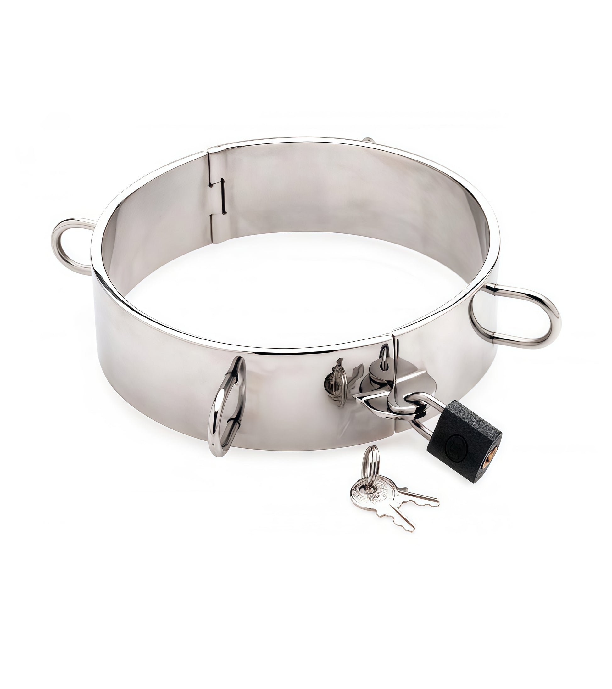 The Lockable Slave Collar with 4 Rings is a versatile BDSM accessory featuring a lockable design and four attached rings. Crafted for symbolic and practical use.